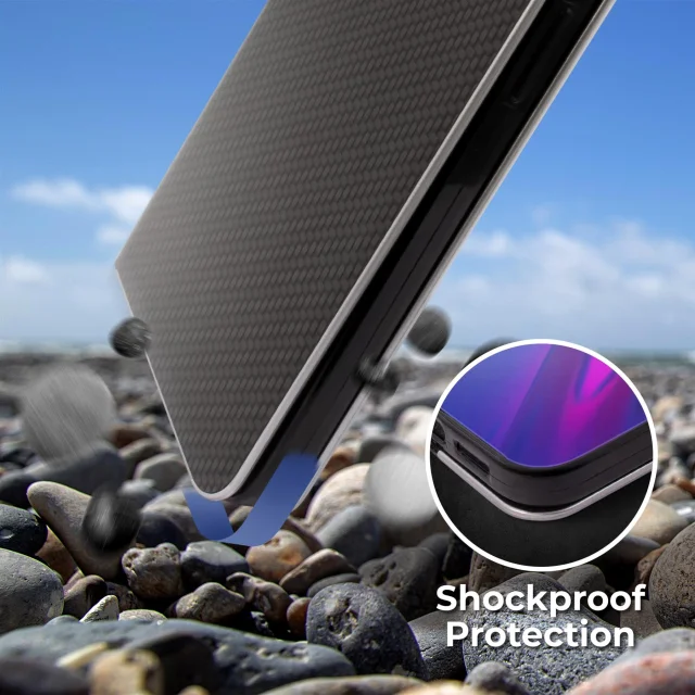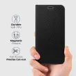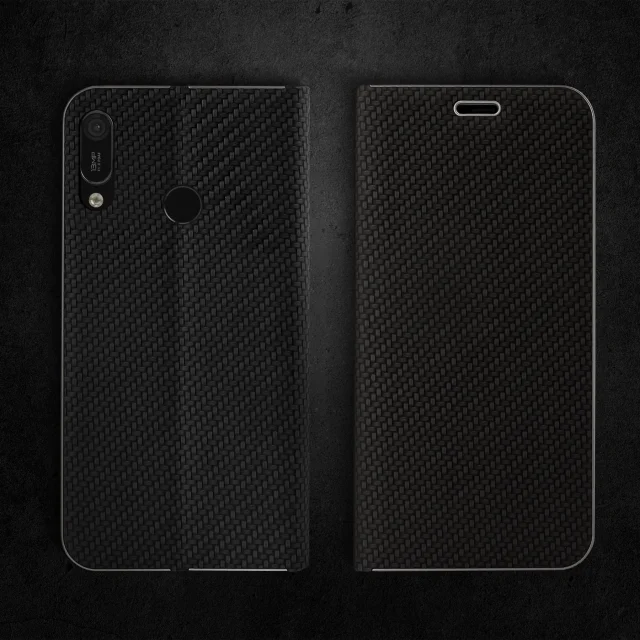Moozy Venus Wallet Case za Huawei Y6 2019, Black Carbon – Metallic Edge Protection Flip Cover z magnetnim zapiranjem in držalom za kartico