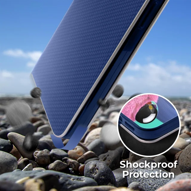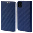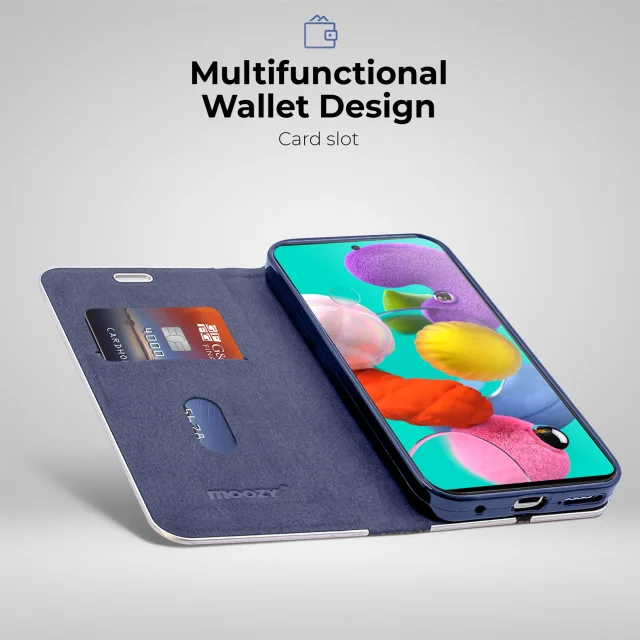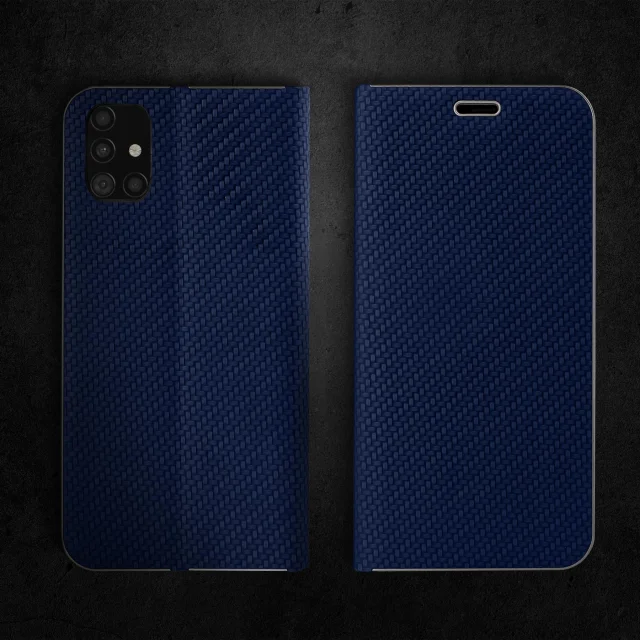 Moozy Venus Wallet Case za Samsung A51, temno moder Carbon – Metallic Edge Protection Flip Cover z magnetnim zapiranjem in držalom za kartice