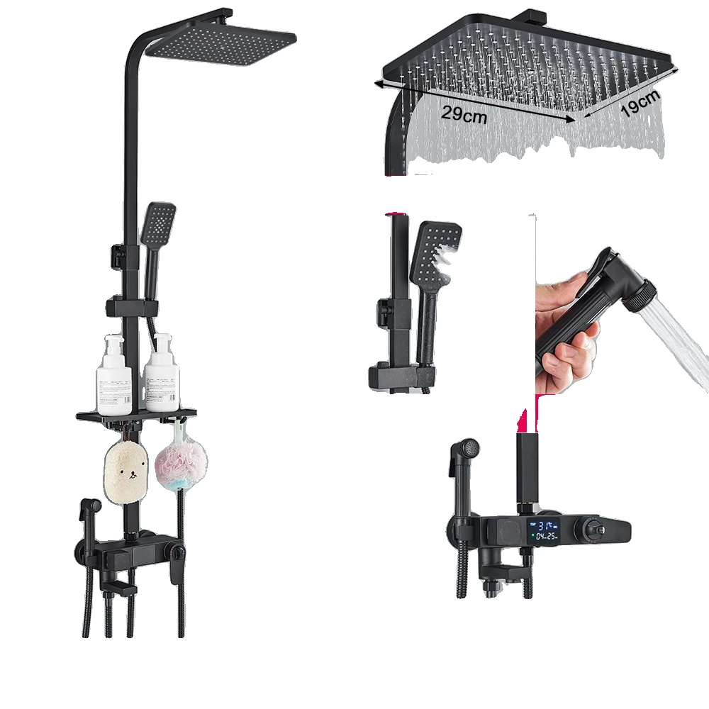 Mosadzné sprchové batérie, moderný štýl, termostatická technológia - čierny termostatický