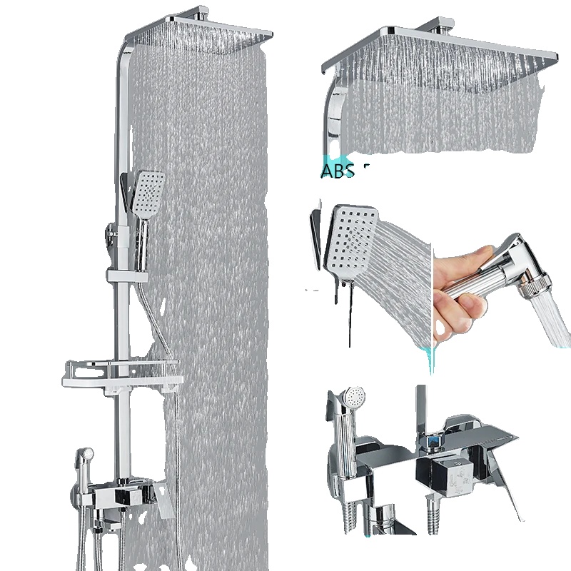 Mosadzný sprchový batériový set, 3-cestný miešací ventil, nastaviteľná výška - Chróm 4way ABS