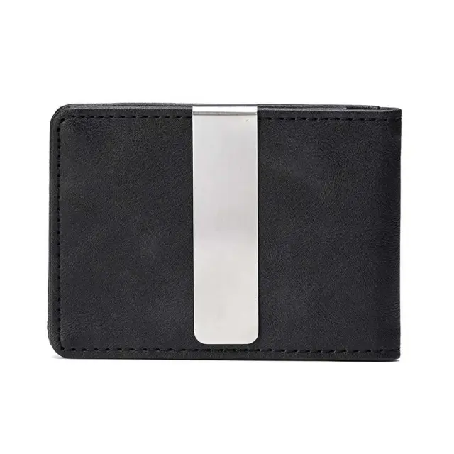 Moška denarnica za kartice iz usnja Crazy Horse z denarno sponko iz nerjavečega jekla Black