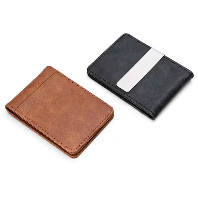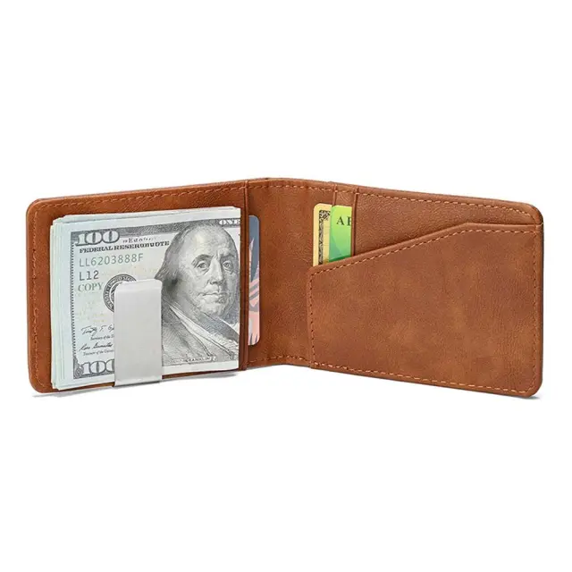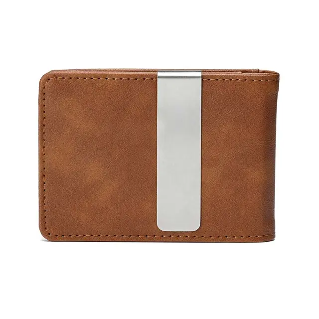 Moška denarnica za kartice iz usnja Crazy Horse z denarno sponko iz nerjavečega jekla Brown