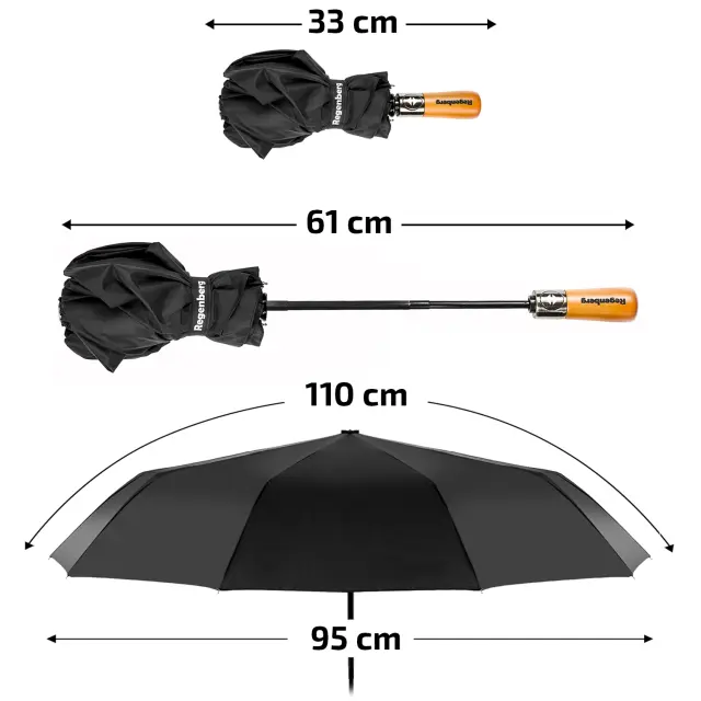 Moški in ženski dežnik, močan zložljiv dežnik, črn WRS sistem, velika streha