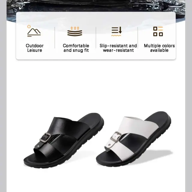 Eleganten in vsestranski: Izboljšajte svoj sproščen videz s temi modnimi moškimi PU usnjenimi sandali na natikanje. Ti sandali s prefinjenim dizajnom s kovinsko zaponko dodajo pridih prefinjenosti vsaki obleki. Več možnosti barv vam omogoča, da izberete popoln par, ki ustreza vašemu osebnemu slogu. Ti vsestranski sandali so primerni za različne priložnosti, od sproščenih izletov do sproščenih družabnih srečanj. Kombinirajte jih s kratkimi hlačami, kavbojkami ali celo lahkimi hlačami za eleganten in udoben komplet. Moderna estetika teh sandalov zagotavlja, da boste vedno izgledali najbolje, medtem ko boste uživali v udobju in funkcionalnosti, ki ju nudijo.