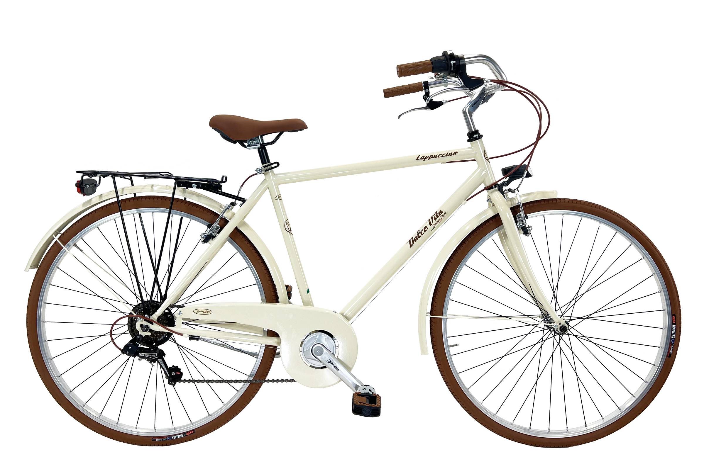 Okvir iz jekla CR-MO Kolesa 28" (700 x 35) Menjalnik TX50 s 6 prestavami Ročaji za prestavljanje (grip-shift) s 6 prestavami V-Brake zavore iz aluminija Krmilo iz aluminija Gonilka iz aluminija Sprednja in zadnja LED luč Jekleni blatniki pobarvani v barvo okvirja Zadnji prtljažnik primeren za otroški sedež Teža približno 15 kg