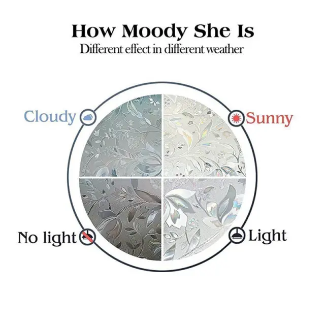 Folija za okna je samolepilna in se pritrdi statično, brez lepila. Pred nanosom se prepričajte, da je okno popolnoma čisto in brez prahu in umazanije. Po potrebi se lahko znova enostavno odstrani. Motirana okenska folija zagotavlja dobro zaščito zasebnosti, fina cvetlična dekoracija pa je okrasni detajl v domu.