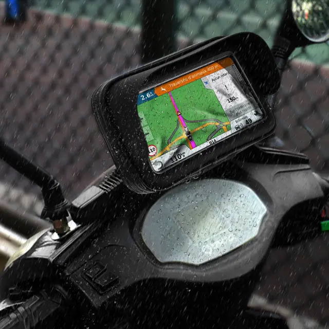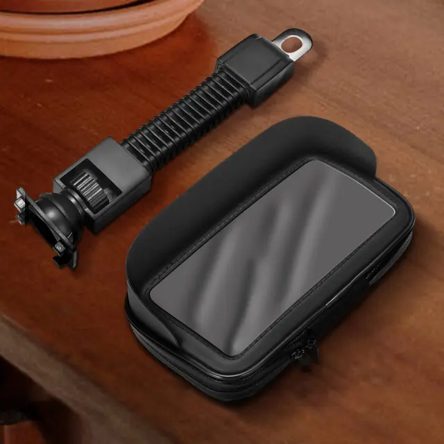 Praktična podpora, ki vam omogoča ohranjanje vizualnega stika s pametnim telefonom, uporabo GPS-a med vožnjo z motorjem ali kolesom. Vključuje žep z zadrgo za podporo pametnega telefona z merami med 85 x 165 mm. Narejen iz odpornega in vodoodpornega materiala, ki ščiti vaš pametni telefon pred dežjem, praskami in udarci. V ogledalo ga lahko namestite s pomočjo trdnega in varnega kovinskega pritrdilnega sistema.