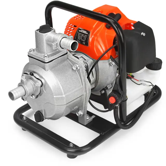 Črpalka je opremljena z 2-taktnim motorjem z notranjim zgorevanjem, ki lahko črpa vodo pri 130 do 300 l / min. Zmogljiva kovinska črpalka doseže največjo globino sesanja do 8 metrov, dolžina odseka vode pa je lahko do 25 metrov.