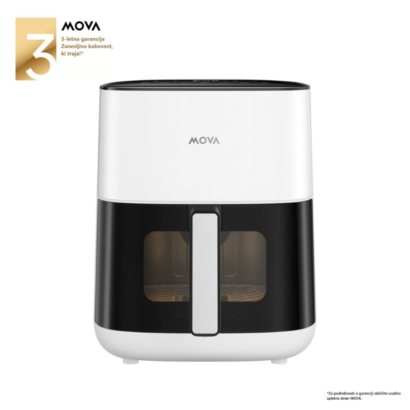 MOVA FD10S Pro Air Fryer (bela) je napreden cvrtnik na vroč zrak z dvojno grelno spiralo (zgoraj in spodaj), zasnovan za hitrejšo in bolj enakomerno pripravo jedi z manj maščobe, ob enostavni in intuitivni uporabi.