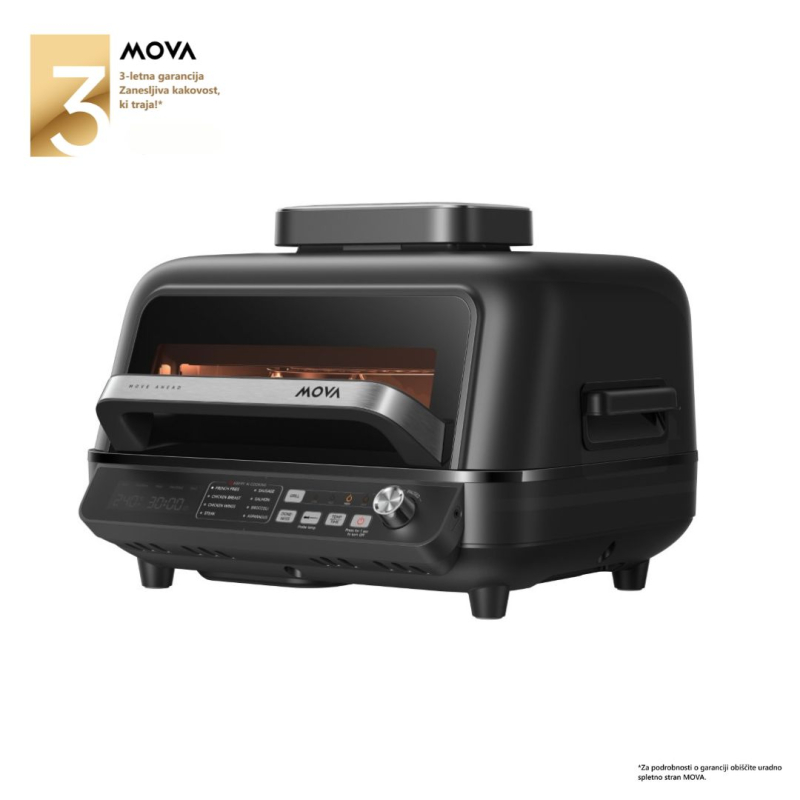 MOVA IG20 Pro Indoor Grill & Air Fryer je vsestranski notranji žar in cvrtnik na vroč zrak v enem, zasnovan za pripravo sočnih jedi z manj maščobe, z enostavnim upravljanjem in profesionalnimi rezultati kar doma.