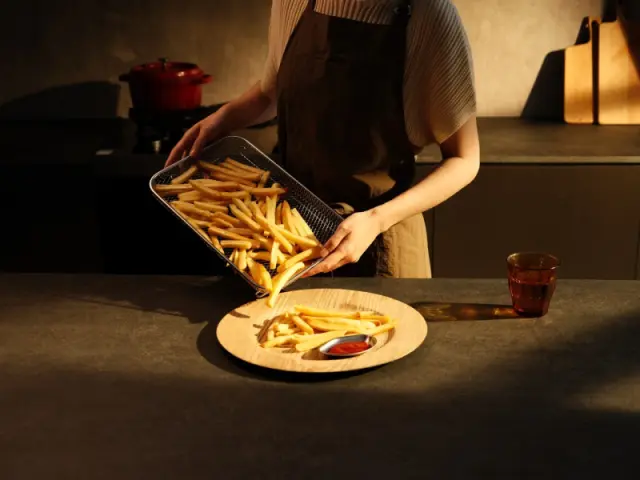 Visokotemperaturno pečenje zagotavlja hitro zapečene površine in sočno notranjost, primerno za meso, ribe, zelenjavo in druge jedi.