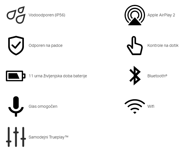 Funkcija Move uporablja samodejno nastavitev Trueplay, ki zvok prilagodi okolici in vsebini.
