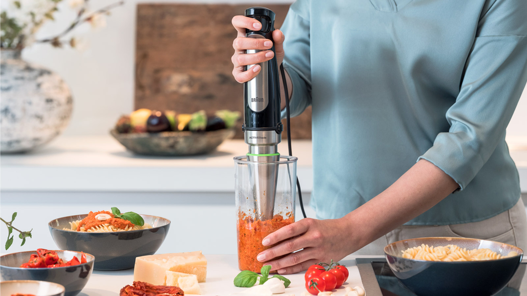 SPLASHControl tehnologija je učinkovita zahvaljujoč edinstvenemu kupolastemu dnu rezalne osi, ki hrano vleče navznoter za finjše mletje in rezilom, ki so nagnjena v nasprotnih si smereh. Ta inovativna SPLASHControl tehnologija je standardna vsakemu Braun paličnemu mešalniku za zagotavljanje popolnih rezultatov brez nereda.