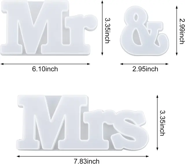 VELIKOSTI IN PAKIRANJE - Ta komplet kalupov iz smole vključuje 3 oblike besednih simbolov: "gospod", "&" in "gospa". Velikost posameznega kalupa je 13 x 8,4 cm, 7,4 x 7,4 cm in 7,8 x 8,3 cm.