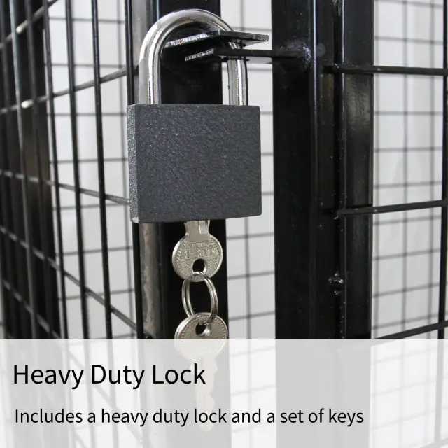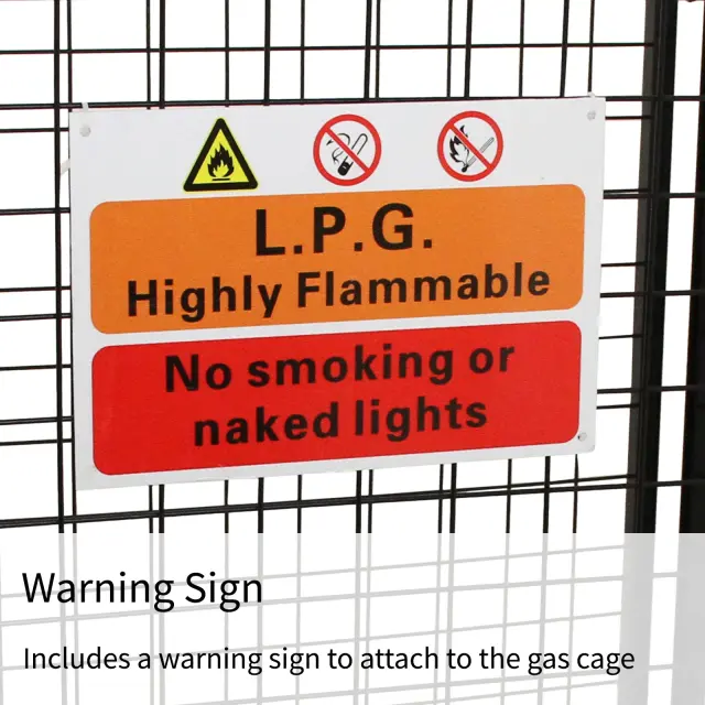 Ta trpežna mrežasta kletka iz pocinkanega jekla je popolna za varno in skrbno shranjevanje plinskih jeklenk. Vrata na tečajih omogočajo enostaven dostop, močna ključavnica pa zagotavlja maksimalno varnost. Prihaja celo z znakom ‘Opozorilo’, popolnoma brezplačno!