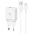 MREŽNI POLNILEC USAMS 2XUSB-A + KABEL USB-C ZA HITRO POLNJENJE BEL