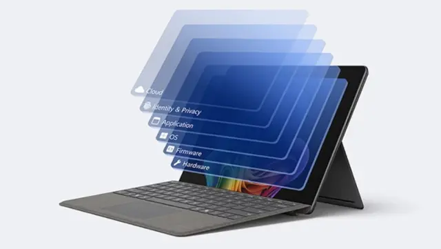 Surface zagotavlja vrhunsko varnost na več ravneh, vključno s strojno opremo, vdelano programsko opremo, programsko opremo, aplikacijami in identiteto.