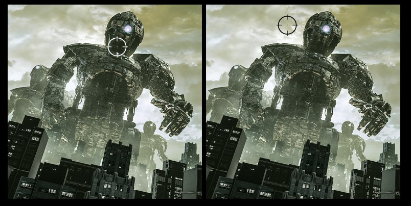 Ciljna točka samodejno spremeni barvo, tako da je vidna v vsakem trenutku. Če se barva ciljne pike prekriva z barvo ozadja, je ciljanje problematično.