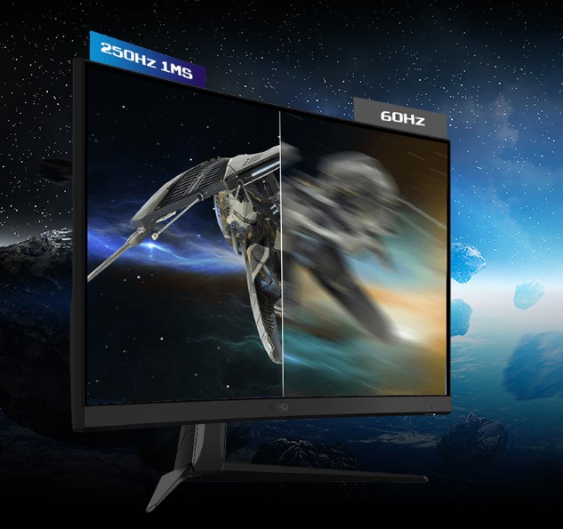 Monitorji MSI so opremljeni s ploščo VA LED s frekvenco osveževanja 250 Hz in odzivnim časom 1 ms, kar je najbolj koristno pri hitrih žanrih iger, kot so prvoosebne strelske igre, bojevniki, dirkalni simulaciji, strategije v realnem času in športne igre. Te vrste iger zahtevajo zelo hitre in natančne gibe, zato boste z monitorjem z izjemno visoko frekvenco osveževanja in hitrim odzivnim časom prehiteli konkurenco.