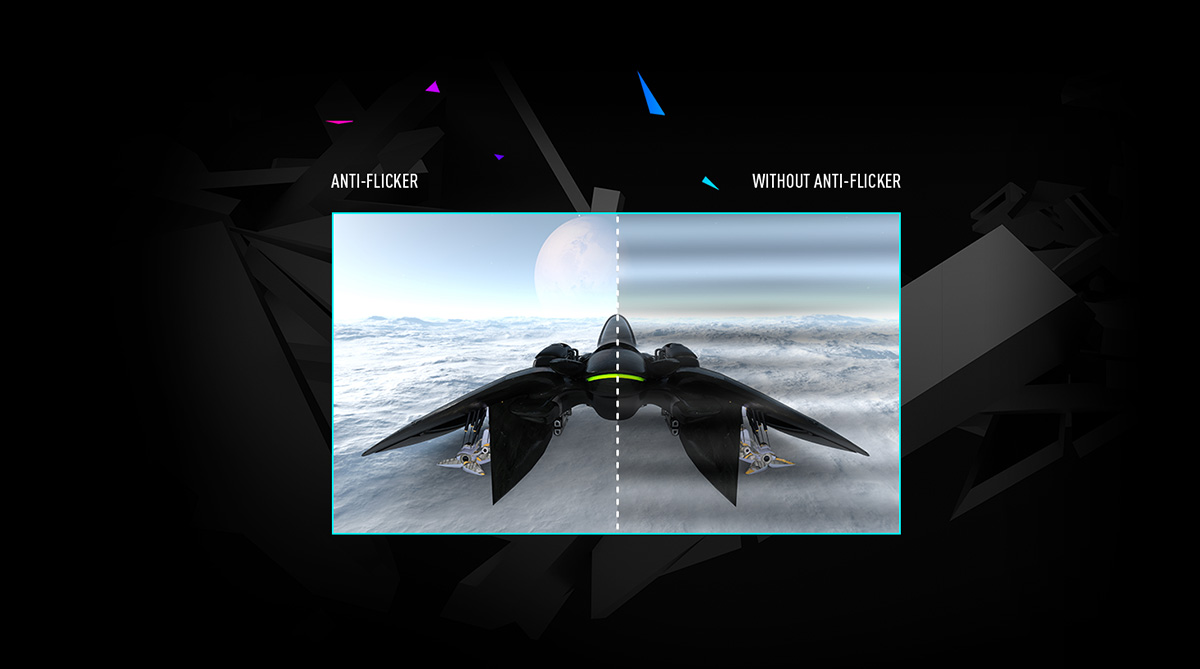 Zasloni splošnih monitorjev imajo običajno hitrost utripanja približno 200-krat na sekundo, ki je s prostim očesom neopazna, vendar lahko sčasoma povzroči utrujenost. MSI-jeva tehnologija Anti-Flicker zagotavlja zelo udobno izkušnjo gledanja, saj zmanjšuje količino utripanja.