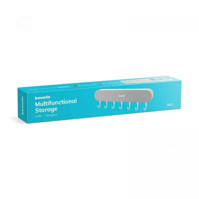 7 obešalnikov in 4 odprtine za shranjevanje na vrhu