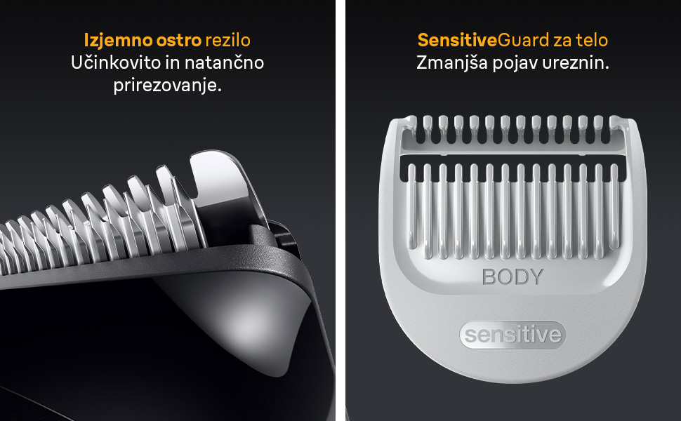 Napredna vsestranskost: izjemno ostro rezilo poskrbi za natančnost, učinkovitost in udobje med urejanjem dlak po celem telesu
