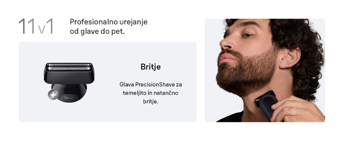 Neomejena raznolikost: poskrbite za popolne linije in gladko britje z glavo PrecisionShave. Urejevalnik brade nudi 14 nastavitev dolžine (3–21 mm)