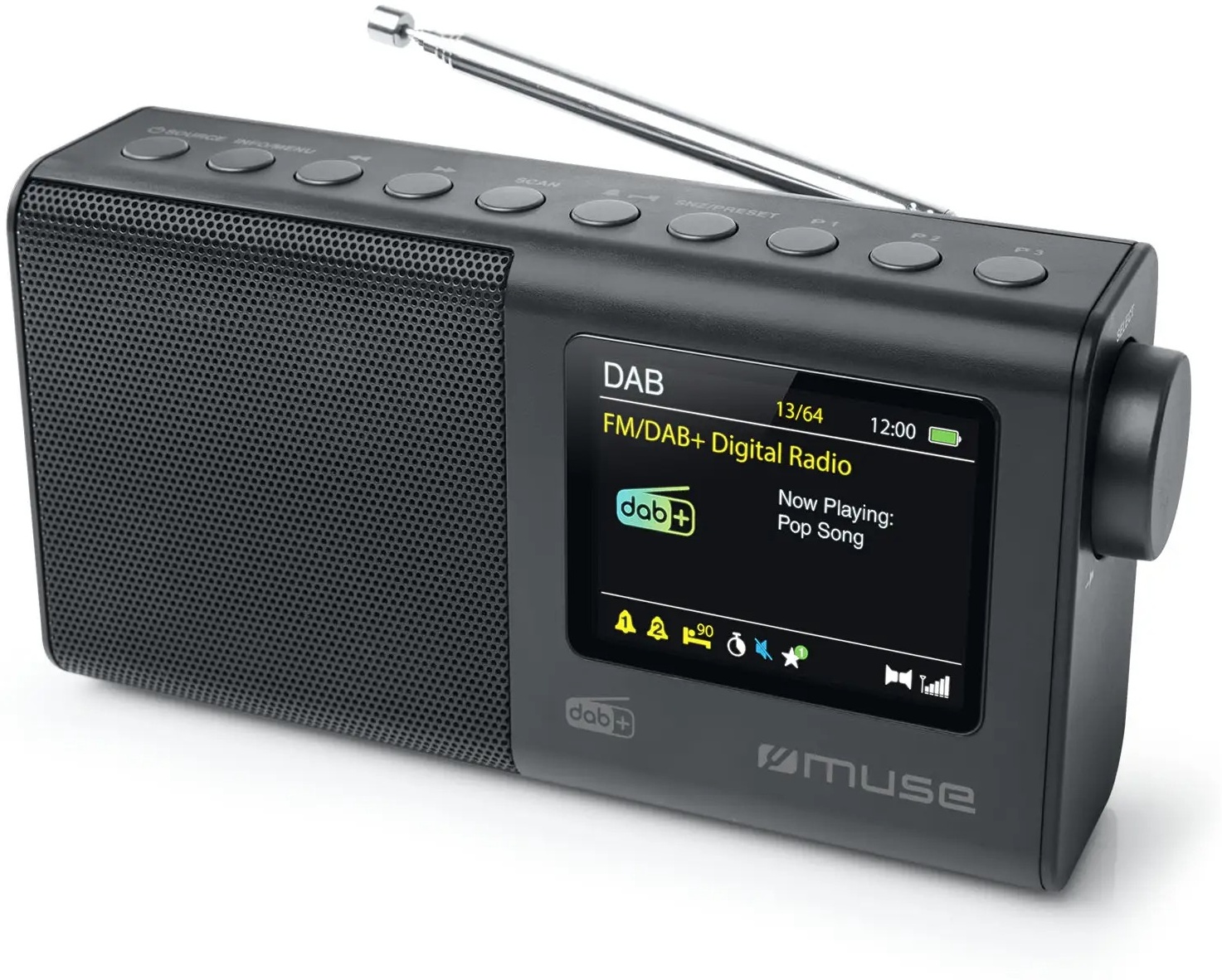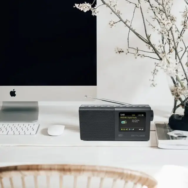 Prenosni radio omogoča poslušanje digitalnih (DAB+) in FM postaj z dobrim zvokom ter enostavnim upravljanjem. Ima barvni 2,8-palčni zaslon, shranjevanje do 20 postaj, samodejno iskanje frekvenc ter funkcije budilke, dremeža (snooze) in časovnika za izklop. Poleg tega omogoča priklop slušalk ali zunanjih naprav prek AUX vhoda ter deluje na elektriko ali baterije, zato je primeren tudi za prenašanje.