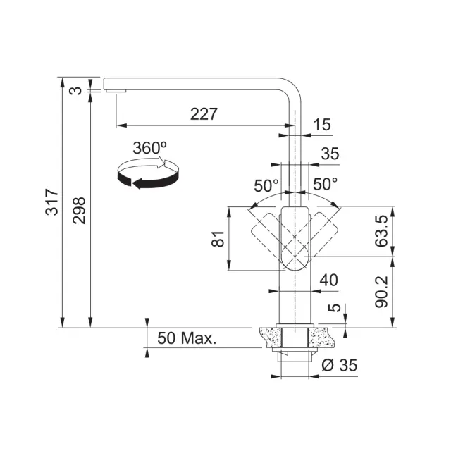 Kuhinjska armatura FRANKE MYTHOS, fiksna, inox