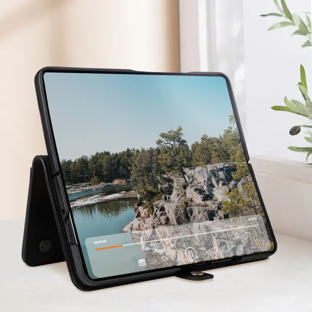 Torbica s preklopom za Samsung Galaxy Z Fold 6 Večnamenska zaščita z zavihkom Magnetni zavihek, Črna