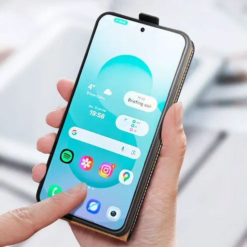 Navpično ohišje za Samsung Galaxy S25 Plus z držalom za kartice, Črna
