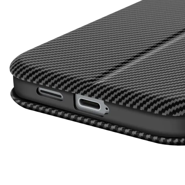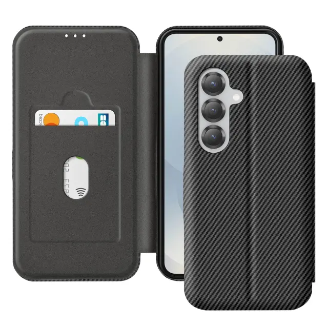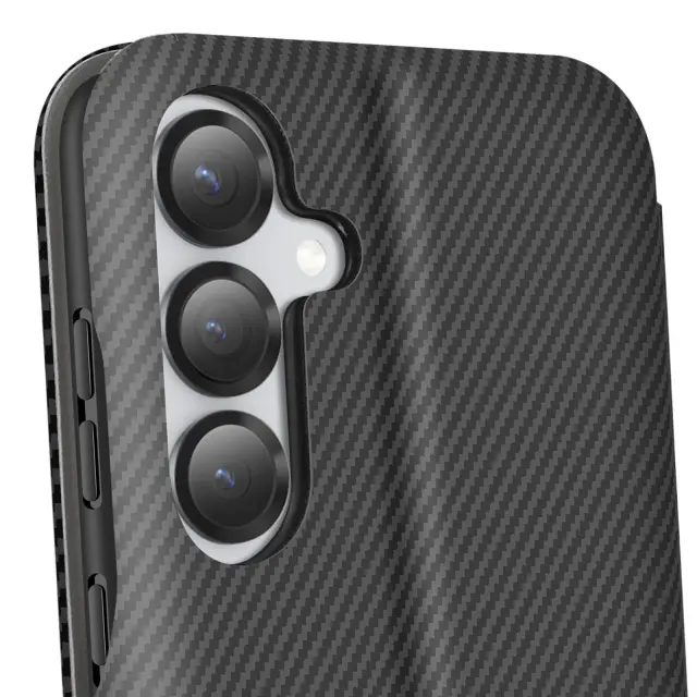 Ohišje za Samsung S25 s podporo za video in zaščito proti RFID iz ogljikovih vlaken, Črna