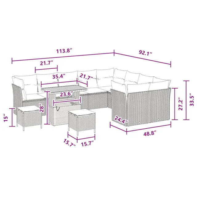 vidaXL Vrtna sedežna garnitura z blazino 12 pcs Črna 90 x 55 x 71 cm