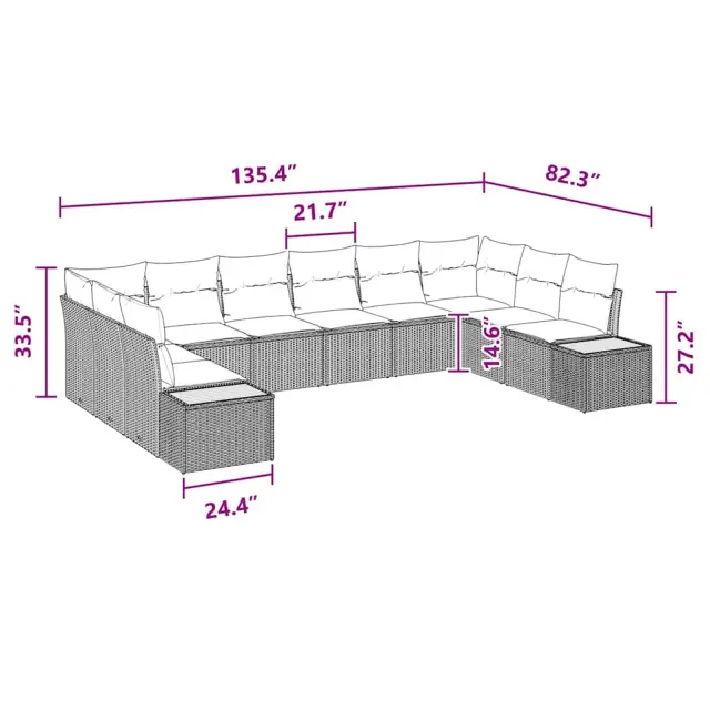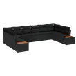 vidaXL Vrtna sedežna garnitura z blazino 10 pcs Črna 344 x 209 x 85 cm