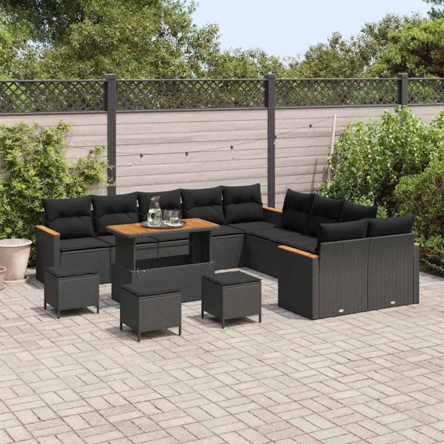 vidaXL Vrtna sedežna garnitura z blazino 14 pcs Črna Poly ratan