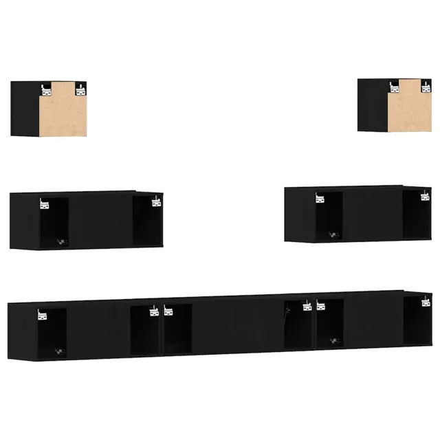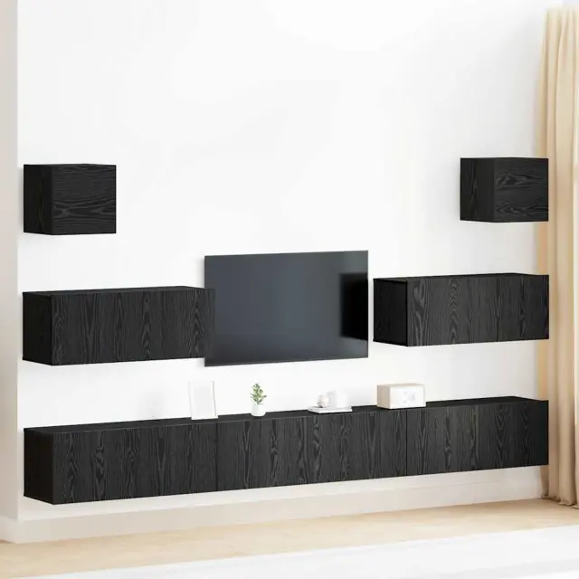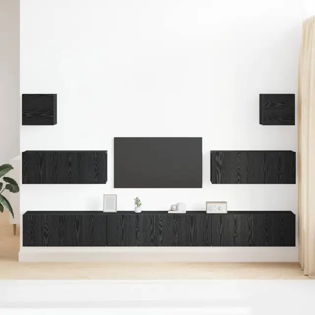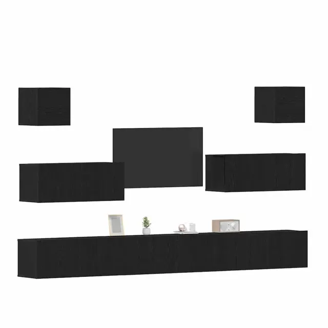 Osvežite svoj prostor s kompletom TV omar vidaXL 7 delni, ki ima eleganten črni hrast in moderno minimalistično zasnovo.