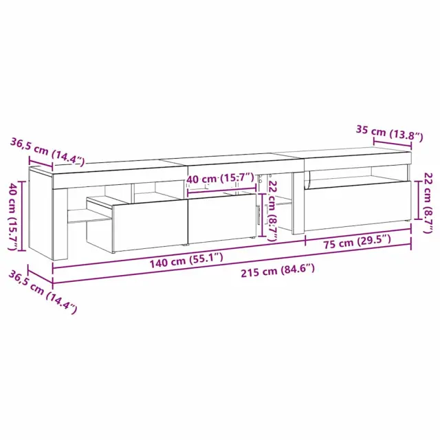 vidaXL TV omare 2 kosi z LED lučmi Črn hrast Inženirski les