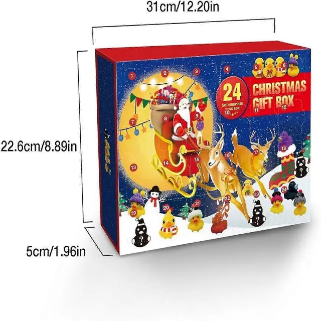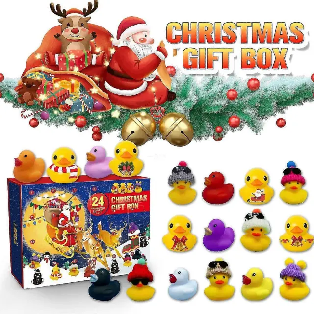 Božični adventni koledar z gumijasto račko, odštevalnik 24 dni do božiča 2024, adventno darilo božični koledar z račko