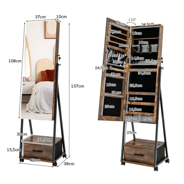 Omarica za nakit z ogledalom za ličenje Stranišče 42 x 38 x 157 cm