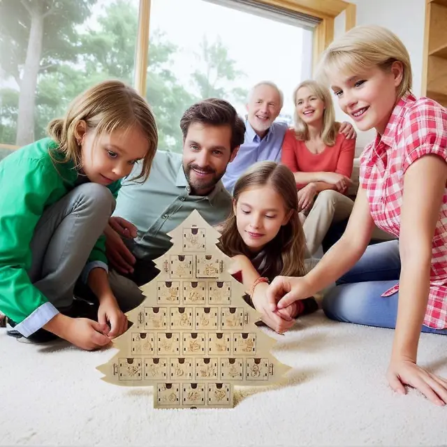 Leseni okrasni okras koledarja v predalu za božično drevo