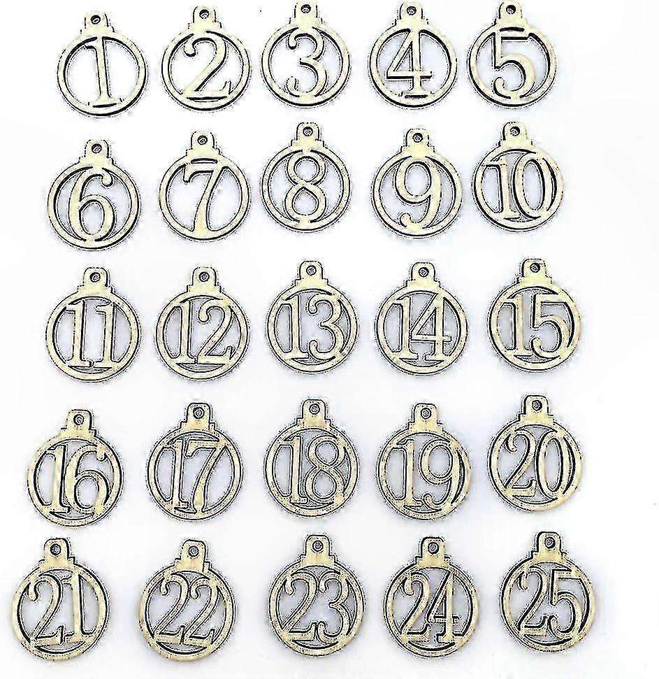 Leseni odštevalni koledar s številkami za božične adventne oznake, 25 kosov naravnega dizajna, praznična izdelava okrasnih predmetov