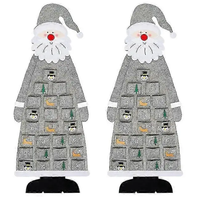 2x božični stenski adventni koledar iz filca z žepi, 24 dni za večkratno uporabo, siv
