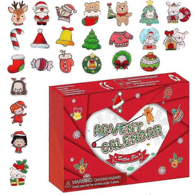 2025 Božični odštevalni koledar, 24 kosov, broška, ​​gumb, zatič, adventna zabava, nagrade za učilnice