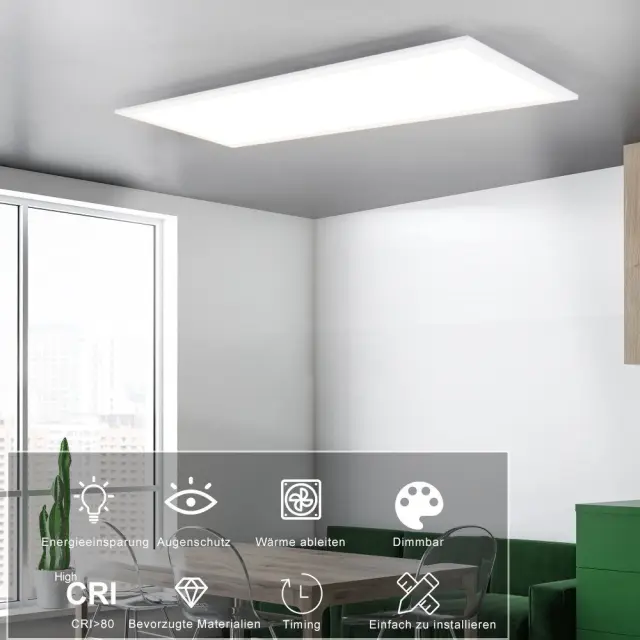 Varčevanje z energijo: 42 W LED panel z nizko porabo energije, lahko prihranite do 90 % stroškov energije v primerjavi s tradicionalnimi žarnicami. LED žarnice so trajno nameščene in zagotavljajo dobro energetsko učinkovitost z življenjsko dobo 30.000 ur zaradi LED tehnologije.
