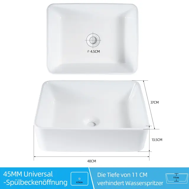 Umivalnik za kopalnico NETTLIFE, kvadratni keramični umivalnik s lotus učinkom