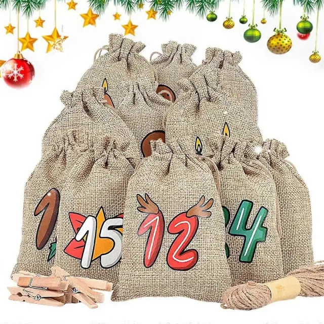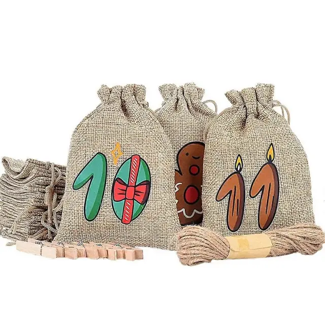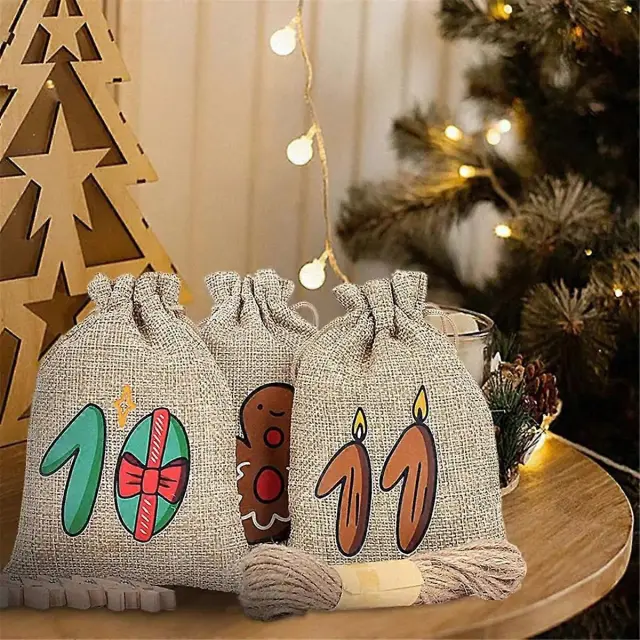 Božične adventne vrečke Prikupne božične vrečke za bonbone PartyFavor 24x za večkratno uporabo, praznične božične vrečke