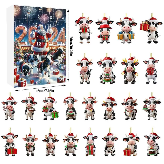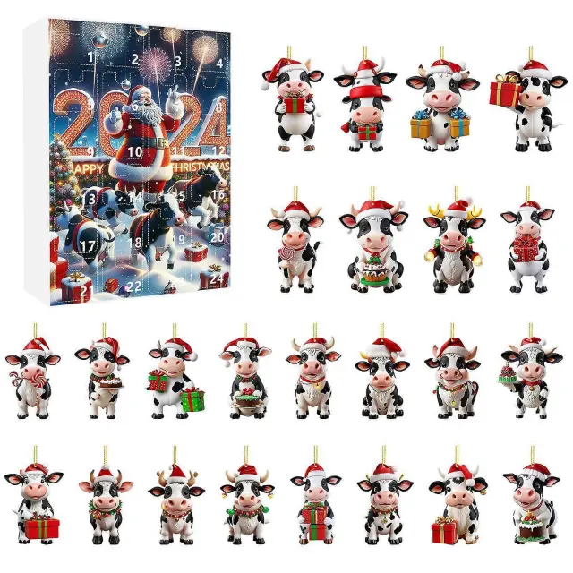 Adventni odštevalni koledar 2024 24-dnevni božični adventni koledar Prisrčna krava, božični okraski, obesek, figure in dodatki božične krave W