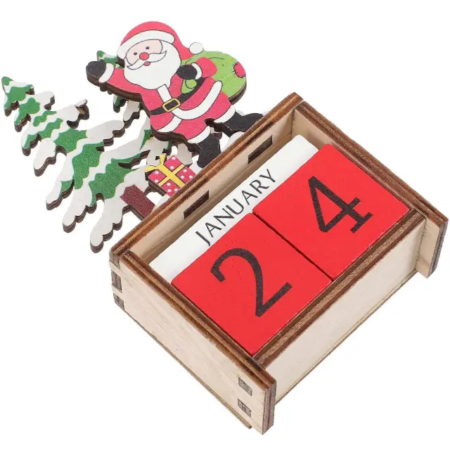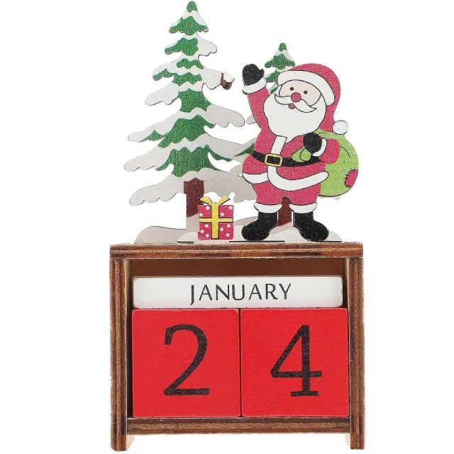 Lesen božični odštevalni koledar Božiček, božična dekoracija, namizni okras, domača pisarna, praznična namizna dekoracija z datumskimi bloki