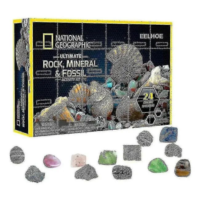 Komplet mineralnih fosilnih kamnov, škatla za božični adventni koledar, igrača za zgodnje izobraževanje, božično darilo