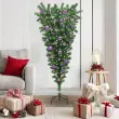 vidaXL Obrnjen umetni božični drevesec s setom žogic Zelena 150 cm PVC